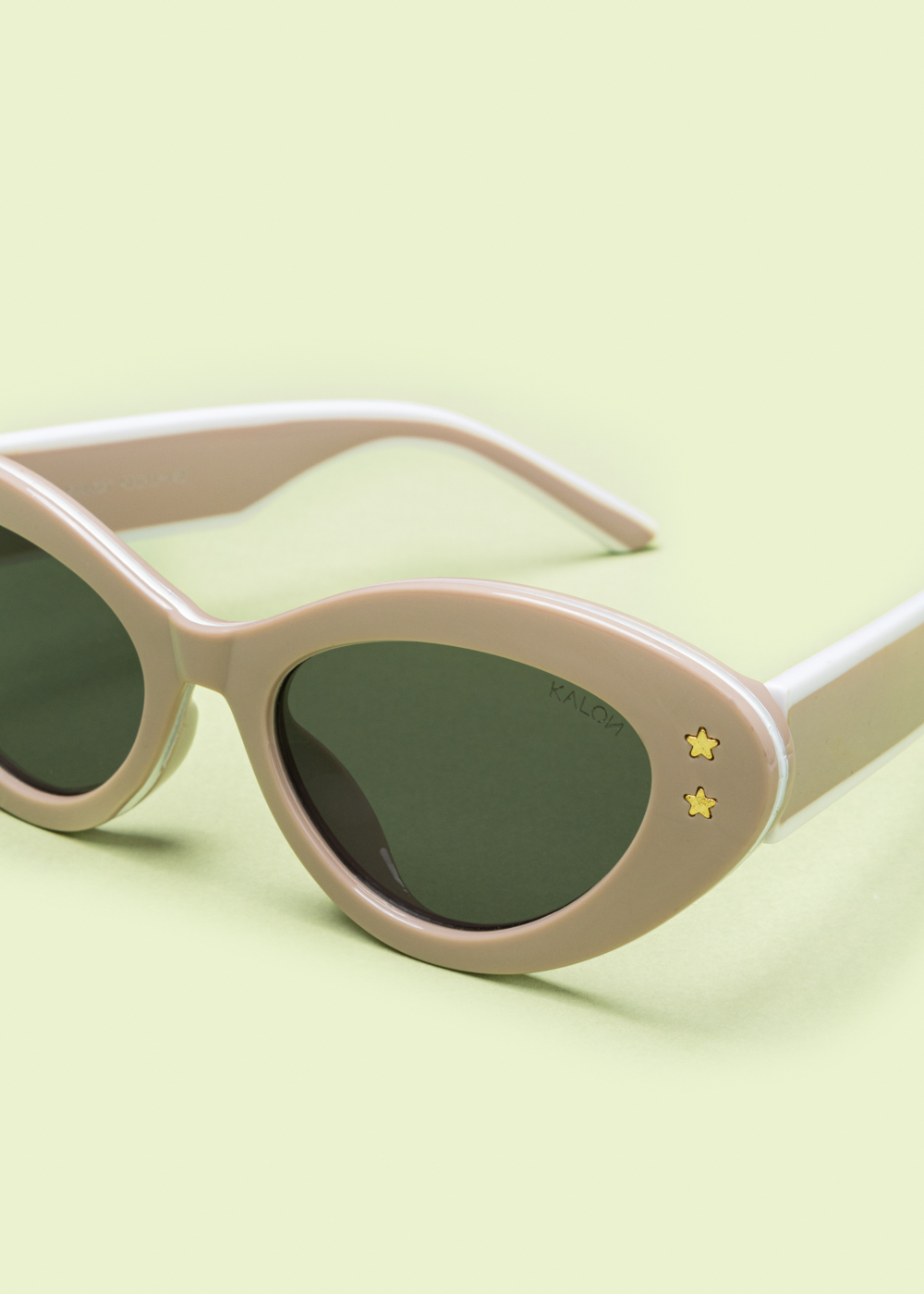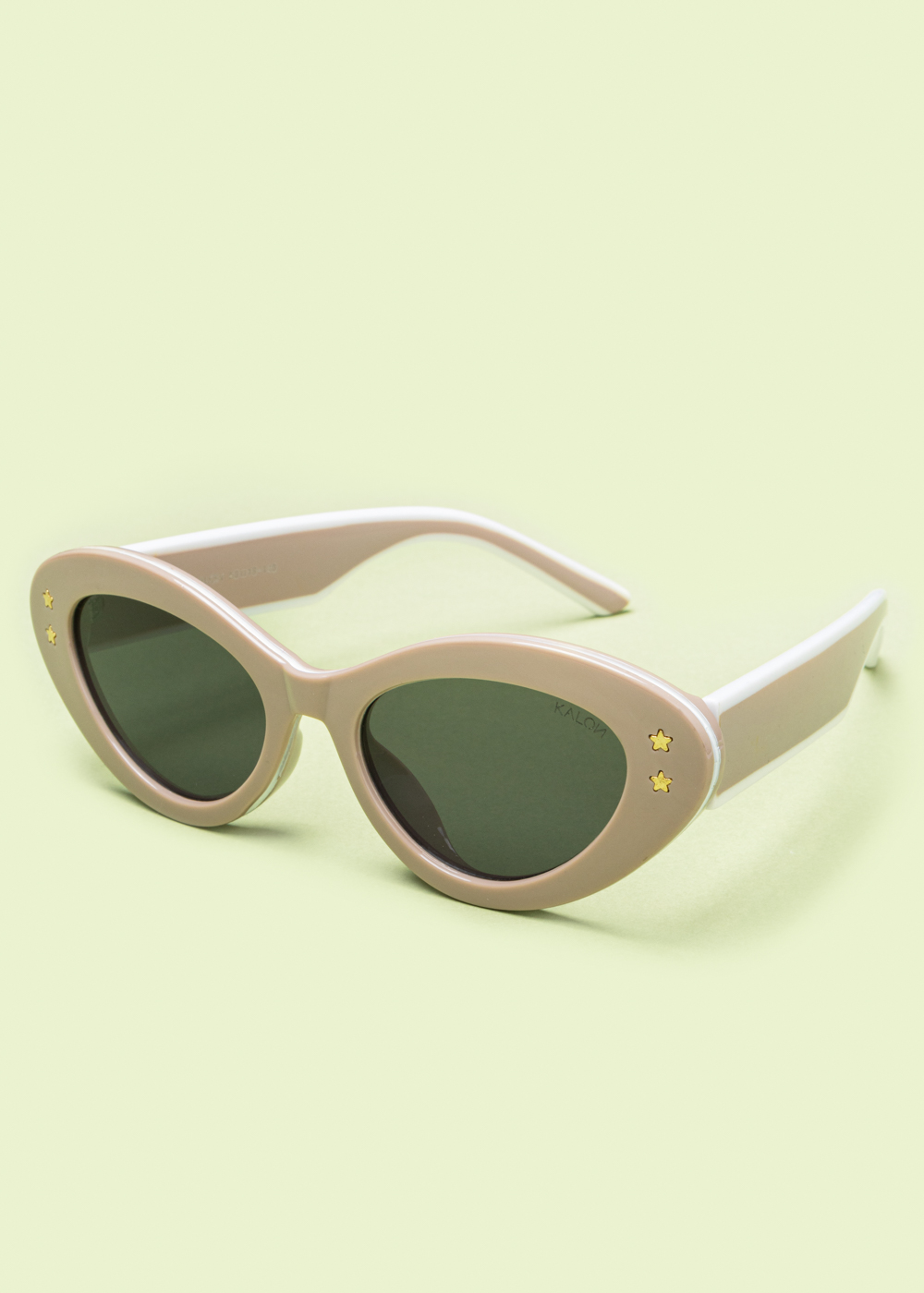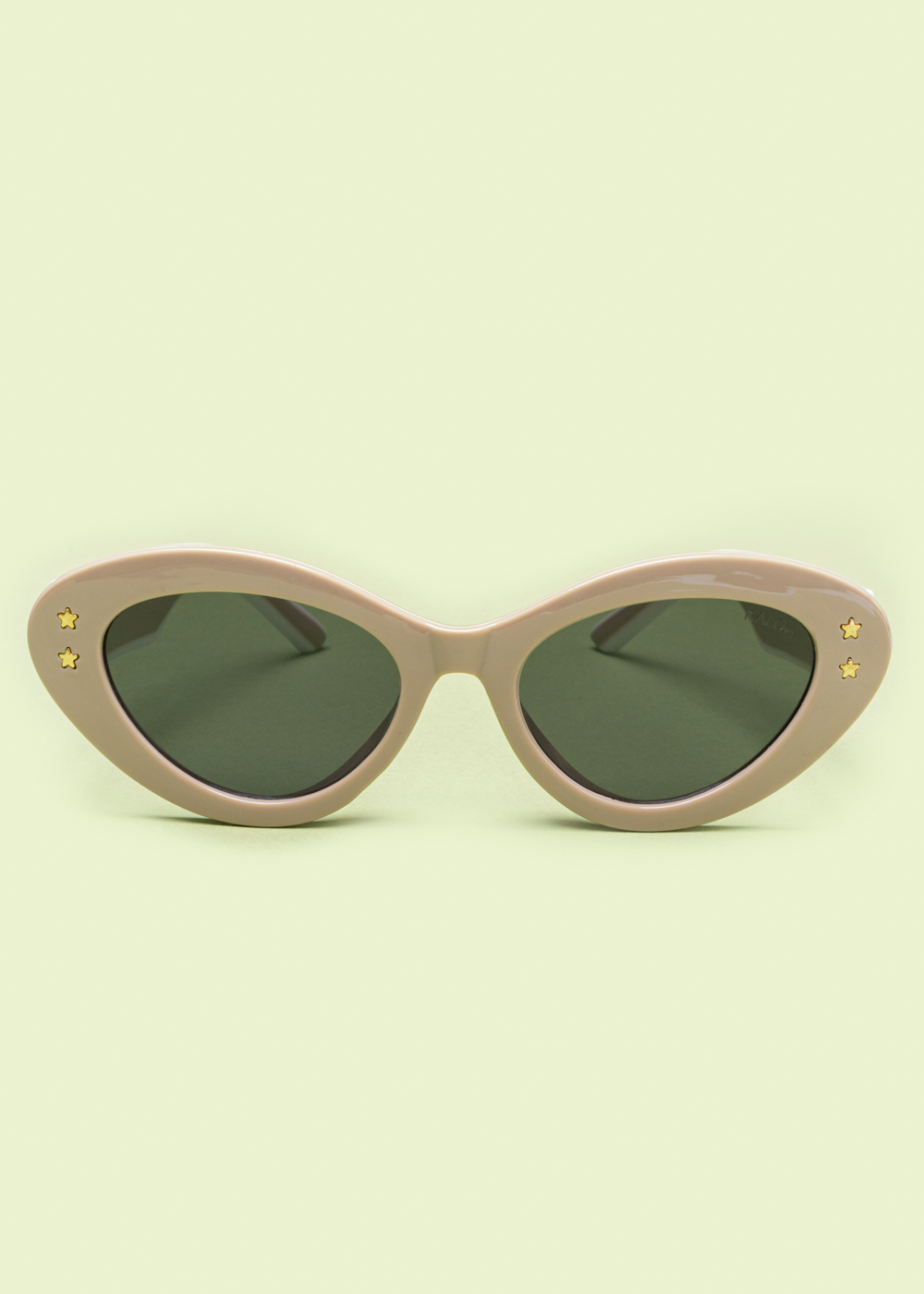 Γυαλιά ηλίου με ιδιαίτερο cat-eye σκελετό σε mocca απόχρωση. Διαθέτουν σκούρους φακούς και διακριτικές χρυσές λεπτομέρειες σε σχήμα αστεριών στους βραχίονες.