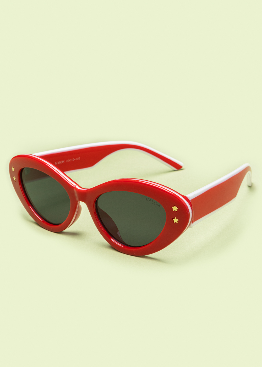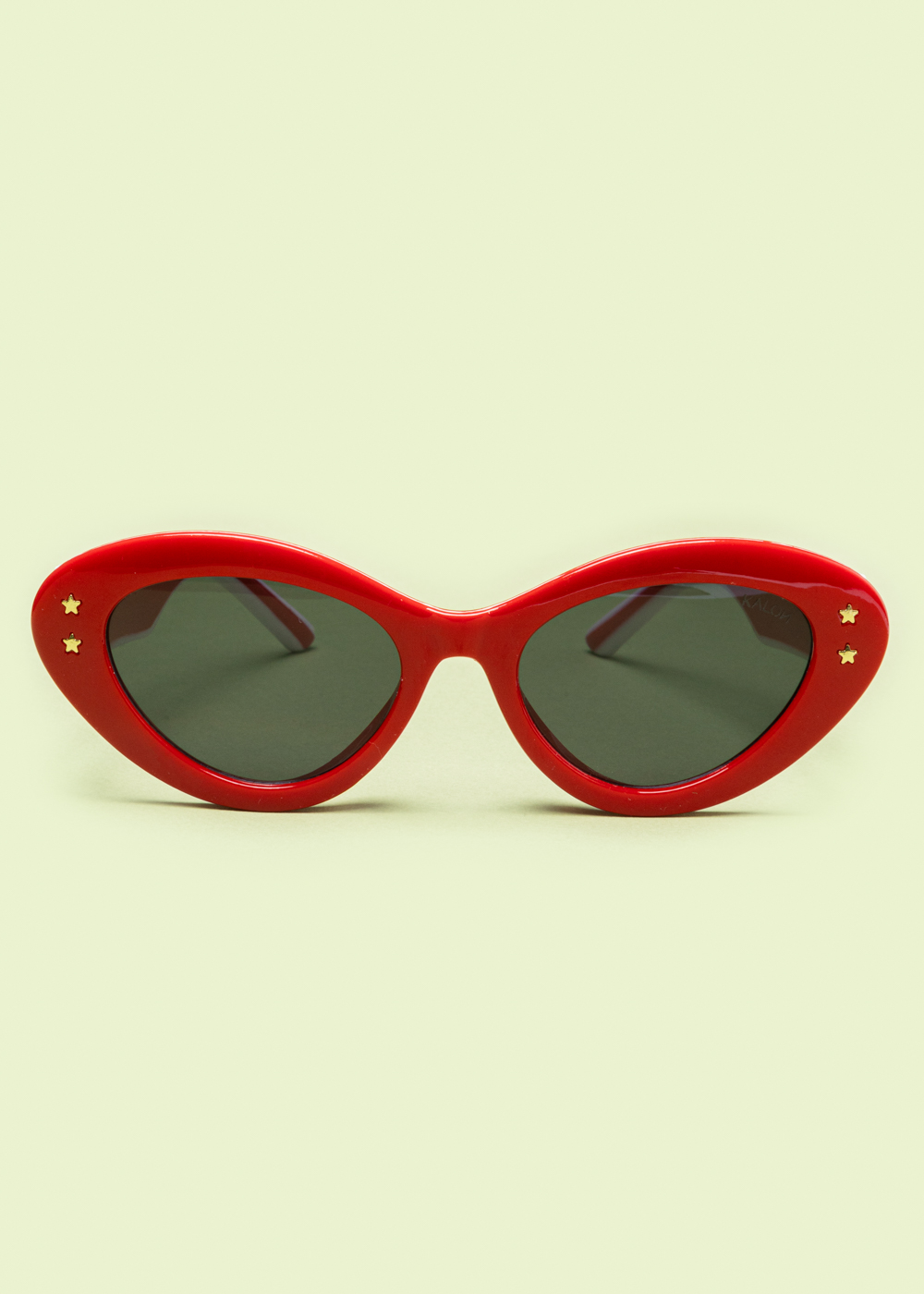 Γυαλιά ηλίου με ιδιαίτερο cat-eye σκελετό σε κόκκινο χρώμα. Διαθέτουν σκούρους φακούς και διακριτικές χρυσές λεπτομέρειες σε σχήμα αστεριών στους βραχίονες. Ένα κομψό και θηλυκό σχέδιο που προσθέτει χαρακτήρα και στυλ σε κάθε εμφάνιση.