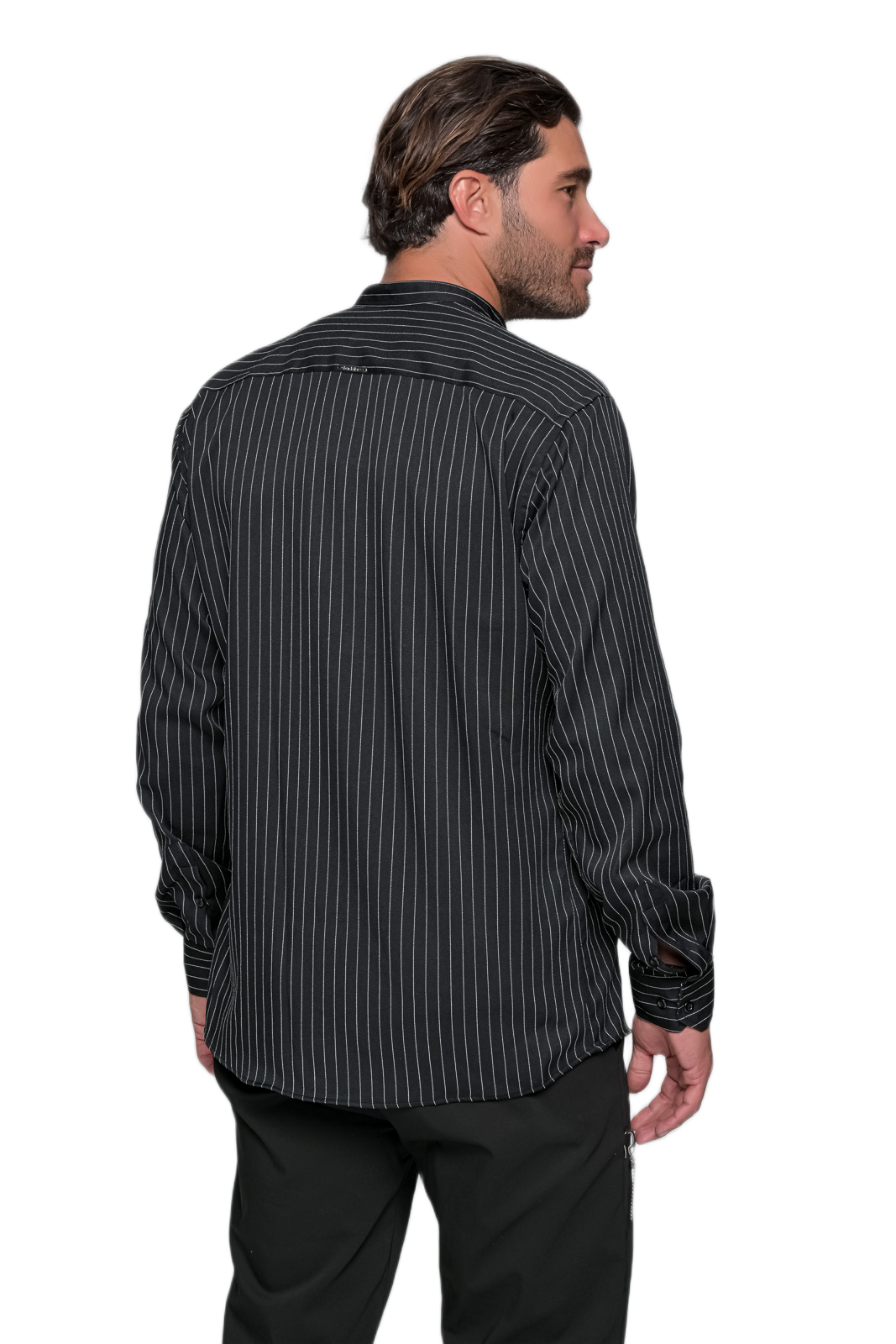 Ανδρικό πουκάμισο σε μαύρη βάση με κάθετες άσπρες ρίγες, για μια κομψή και δυναμική εμφάνιση. Ο κλασικός γιακάς και η ίσια γραμμή του προσφέρουν άνεση και στυλ, ενώ το διαχρονικό ριγέ μοτίβο κολακεύει τη σιλουέτα και δίνει μοντέρνα πινελιά σε κάθε look. Ιδανικό για βραδινές εξόδους αλλά και smart-casual συνδυασμούς.