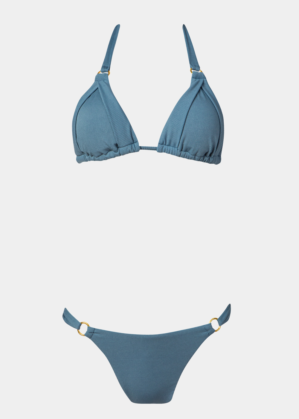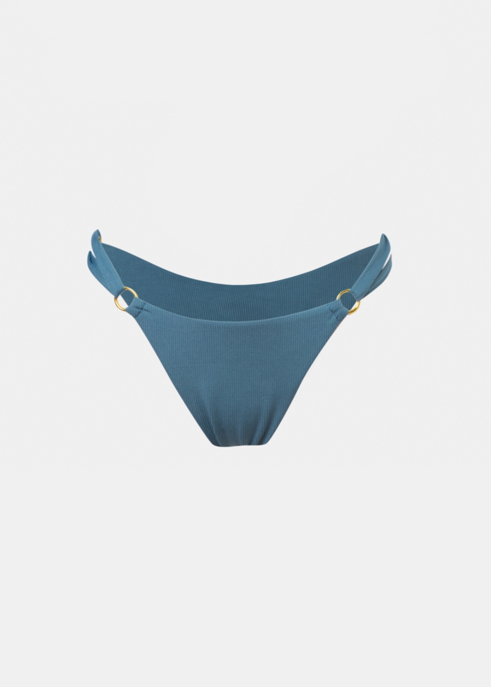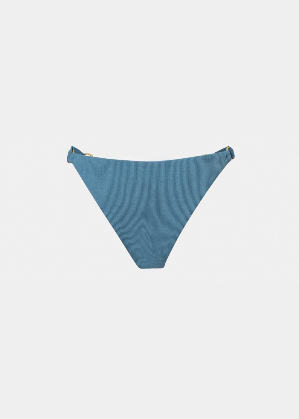 Ένα κομψό bikini bottom σε γαλαζοπράσινη απόχρωση με διακριτική rib υφή, που αγκαλιάζει το σώμα και αναδεικνύει τη σιλουέτα με φυσικό τρόπο. Οι λεπτομέρειες με τους χρυσούς κρίκους στα πλαϊνά προσθέτουν μία διακριτική αίσθηση πολυτέλειας, ενώ η minimal γραμμή του δημιουργεί ένα σύγχρονο και θηλυκό αποτέλεσμα, ιδανικό για chic καλοκαιρινές εμφανίσεις.
