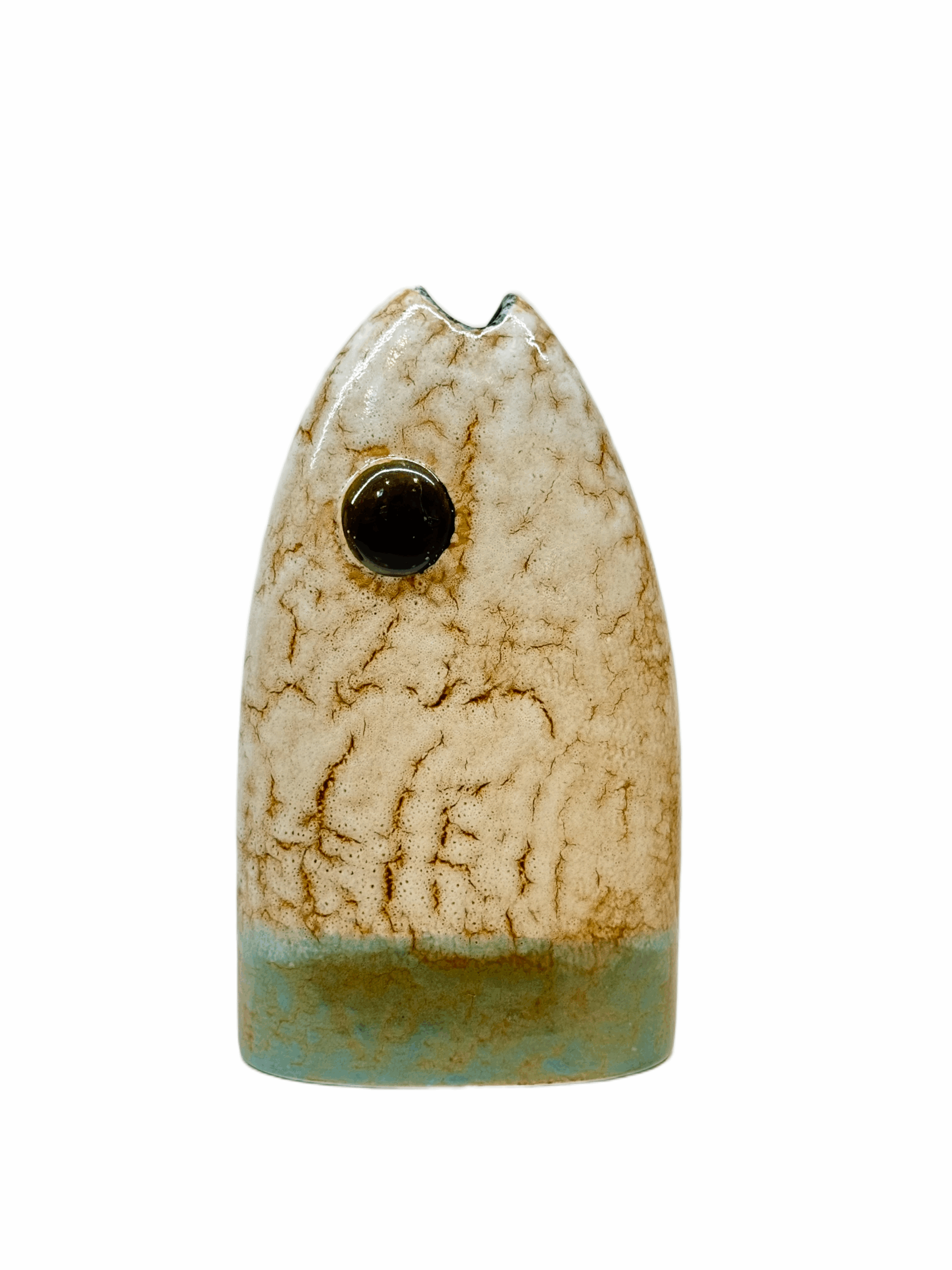 Μεγάλο χειροποίητο κεραμικό ψάρι σε γήινες και τυρκουάζ αποχρώσεις. Μπορεί να τοποθετηθεί μόνο του σαν εντυπωσιακό διακοσμητικό ή να χρησιμοποιηθεί ως βάζο.