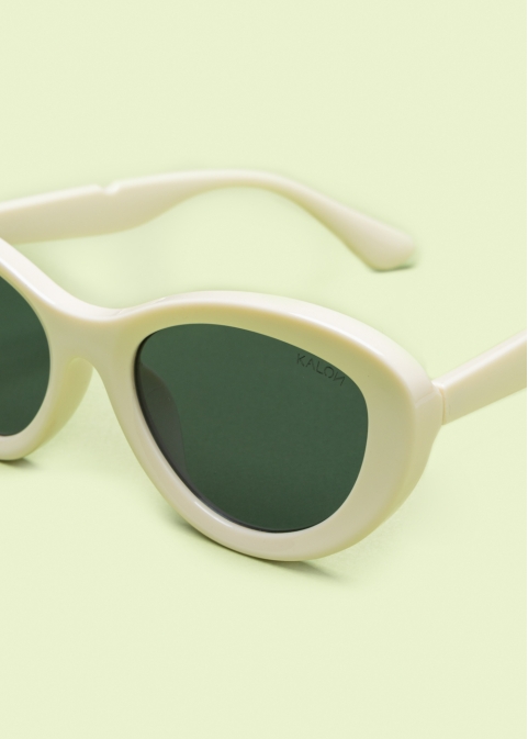 Μπεζ γυαλιά ηλίου με οβάλ σκελετό και σκούρους φακούς. Διαθέτουν σταθερή κατασκευή και άνετη εφαρμογή. Ιδανικά για καθημερινή χρήση και προστασία από τον ήλιο.
