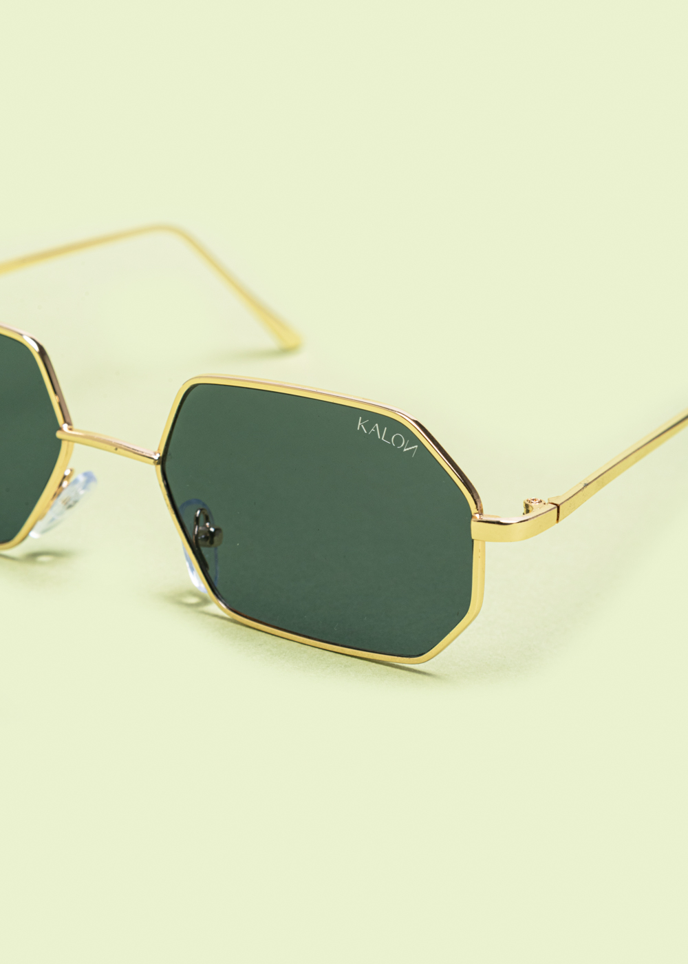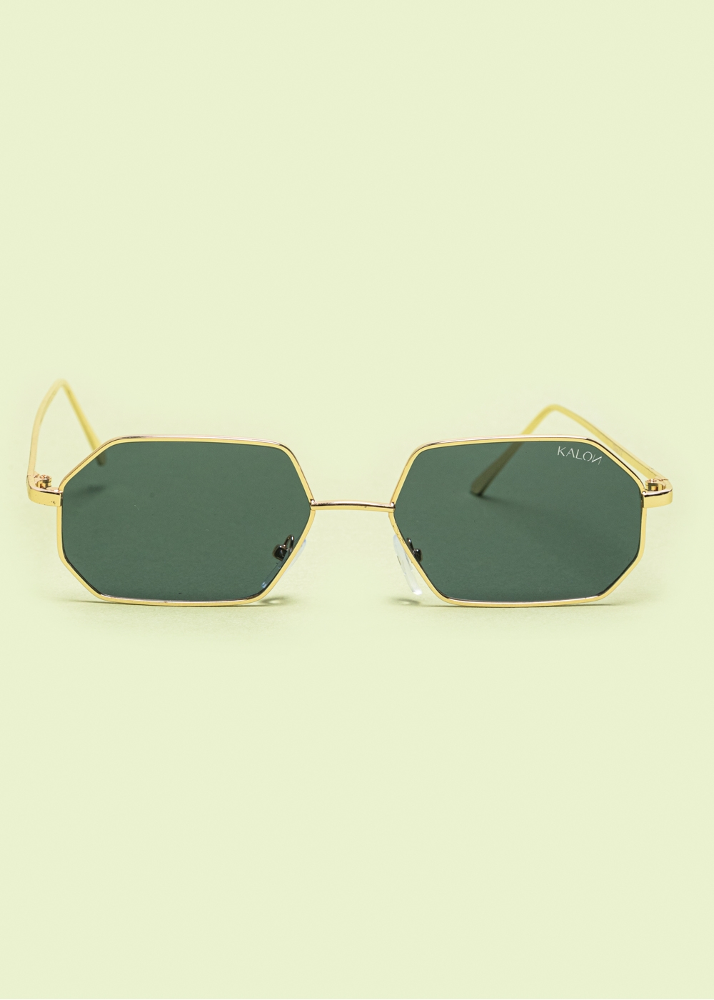 Σκελετός σε χρυσή απόχρωση με λεπτό μεταλλικό σχεδιασμό και μαύρους φακούς.