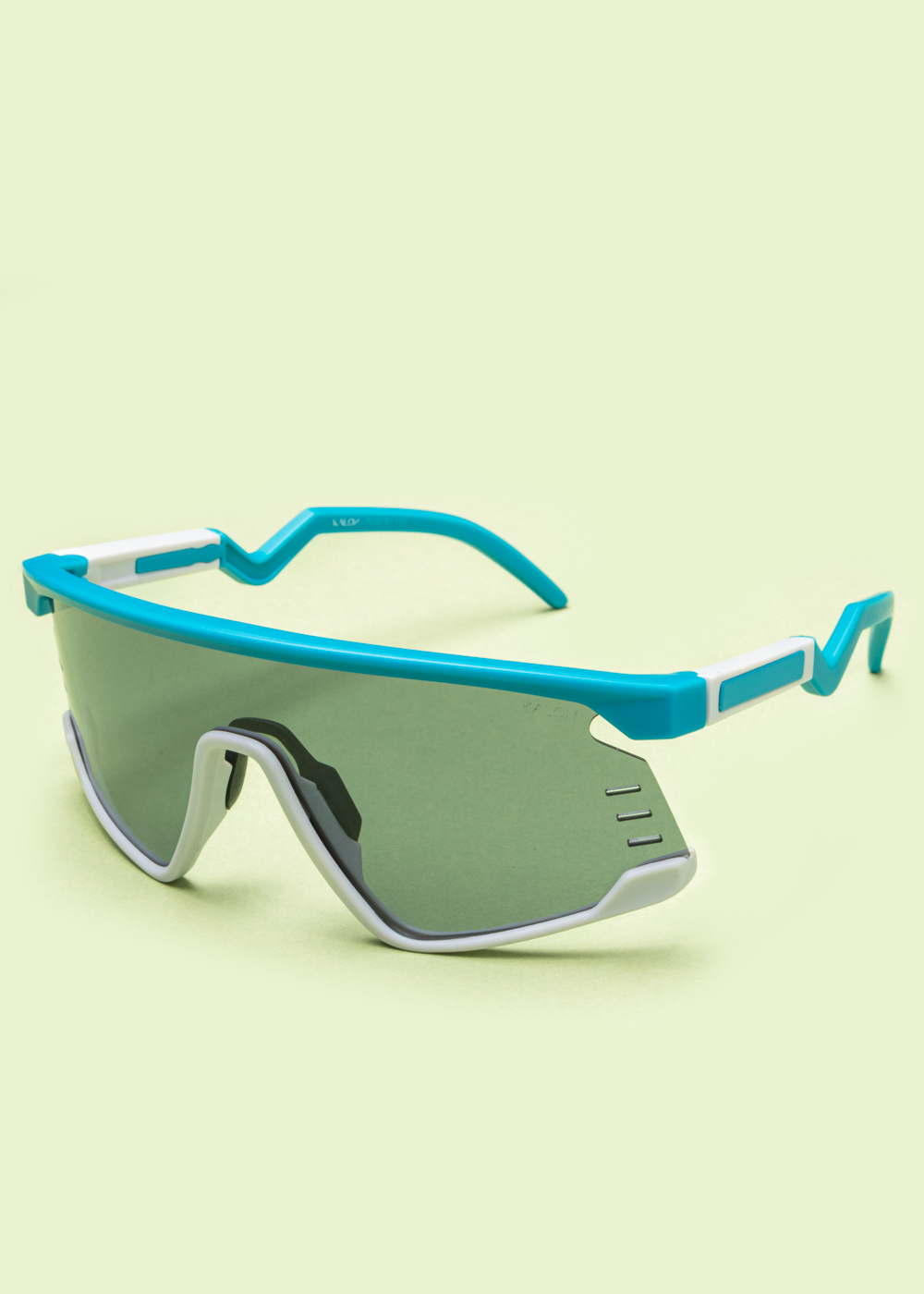 Γυαλιά ηλίου με ενιαίο φακό και μοντέρνο, sporty σχεδιασμό. ο συνδυασμός μπλε με λευκές λεπτομέρειες δίνει καθαρό και δροσερό αποτέλεσμα, ιδανικό για καλοκαιρινά looks με ένταση και στυλ.