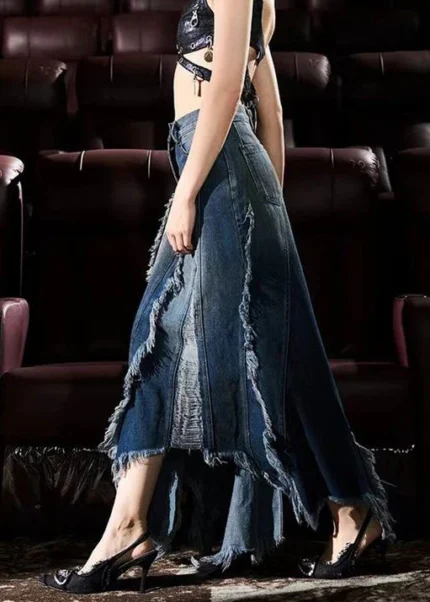 Μίνι φούστα σε μαύρη απόχρωση με εντυπωσιακά κρόσσια που προσθέτουν κίνηση και στυλ.
