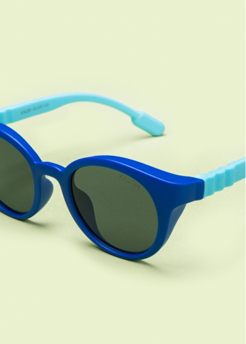 Παιδικά γυαλιά ηλίου με στρογγυλό σκελετό σε έντονη μπλε απόχρωση. Ο συνδυασμός με γαλάζιους βραχίονες δίνει παιχνιδιάρικο και χαρούμενο χαρακτήρα, ιδανικά για άνεση και προστασία στις καθημερινές δραστηριότητες.