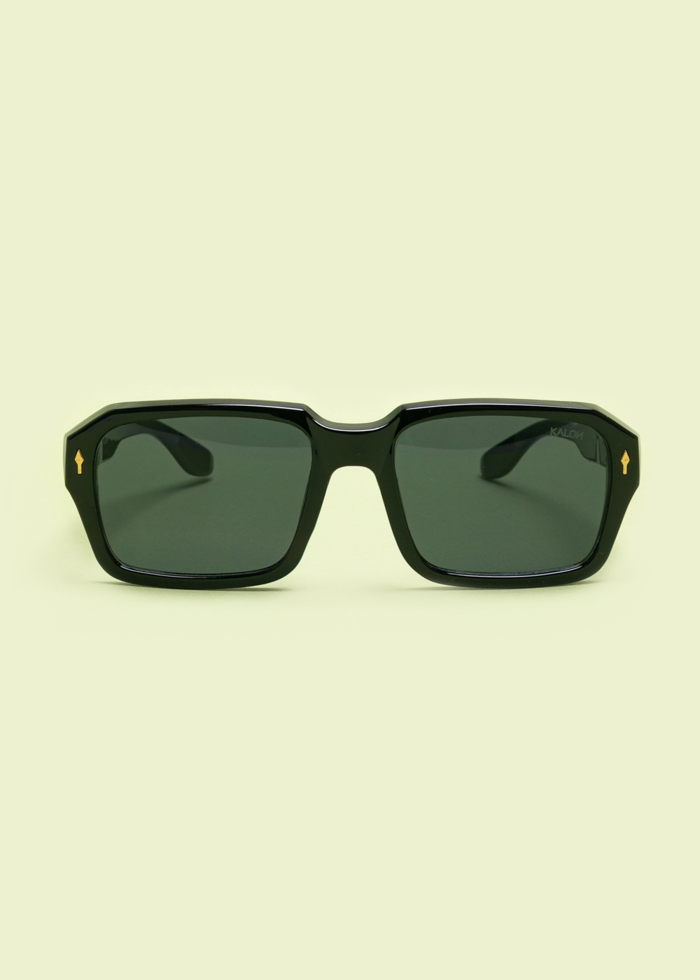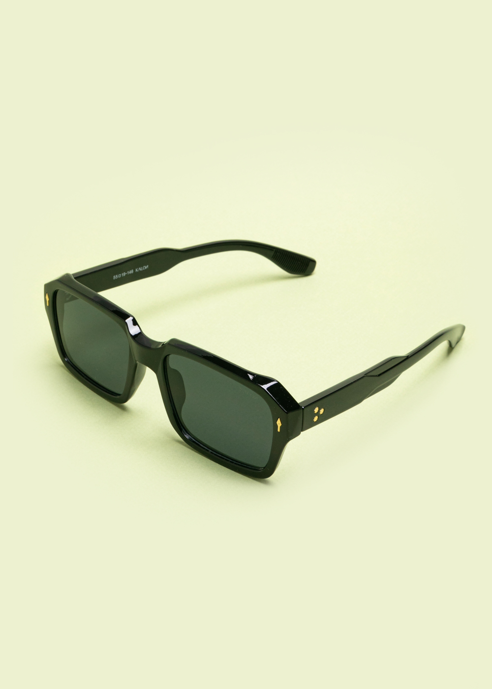 Γυαλιά ηλίου με γεωμετρικό, τετράγωνο σκελετό σε μαύρο χρώμα. Διαθέτουν σκούρους φακούς και κομψές χρυσές λεπτομέρειες στους βραχίονες.