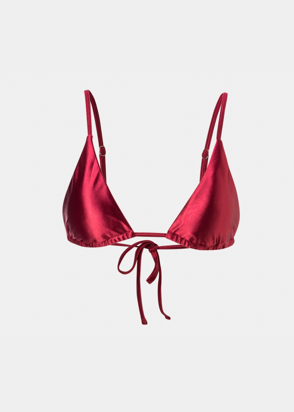 Bikini top σε βαθιά burgundy απόχρωση με λαμπερό τελείωμα που αναβαθμίζει κάθε καλοκαιρινό look. Το shimmering ύφασμα αντανακλά το φως, ενώ οι ρυθμιζόμενες τιράντες και το δέσιμο στην πλάτη προσφέρουν ιδανική εφαρμογή. Minimal αλλά δυναμικό, για κομψές και εντυπωσιακές εμφανίσεις.