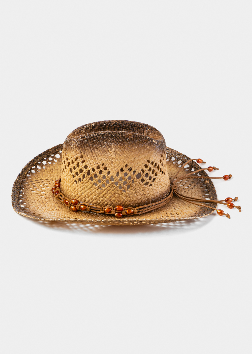 NATURAL RAFFIA COWBOY STYLE HAT W/ ORANGE STONES