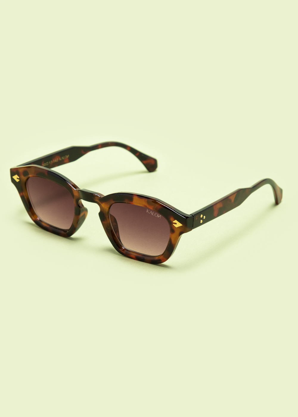 Σκελετός σε ταρταρούγα απόχρωση με γυαλιστερό φινίρισμα και καφέ φακούς με διαβάθμιση, με χρυσές λεπτομέρειες στους βραχίονες.