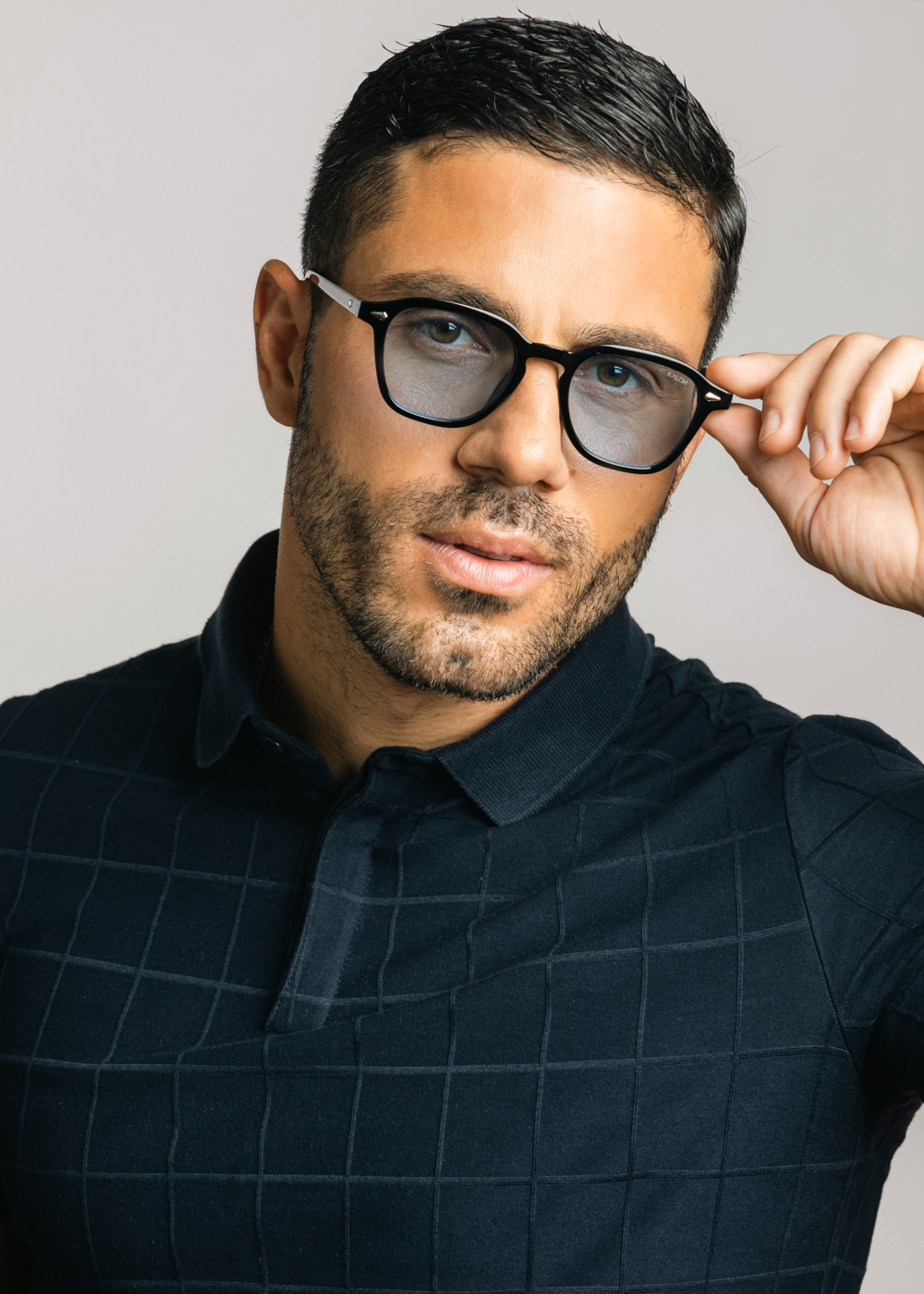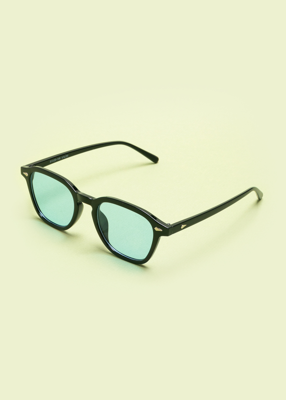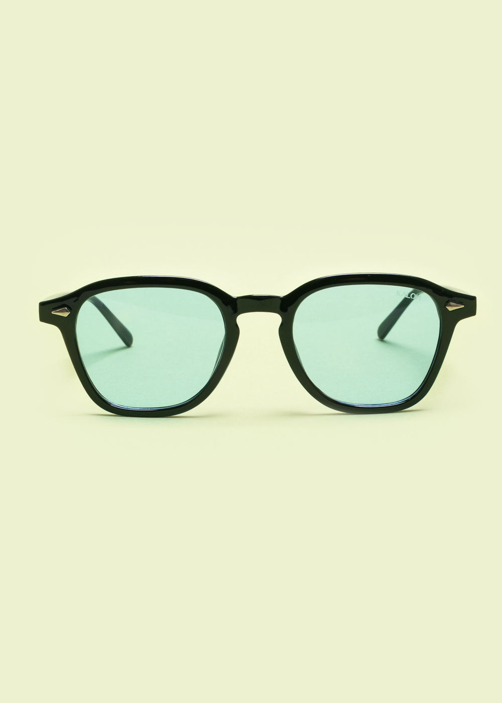 Μαύρος σκελετός με καθαρές γραμμές και ελαφρώς τετραγωνισμένο σχήμα, συνδυασμένος με ανοιχτόχρωμους φακούς. Minimal αισθητική και σύγχρονη εφαρμογή για καθημερινό στυλ.