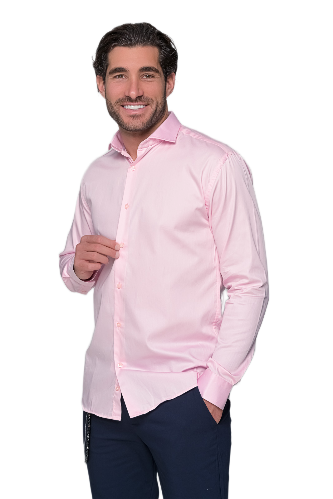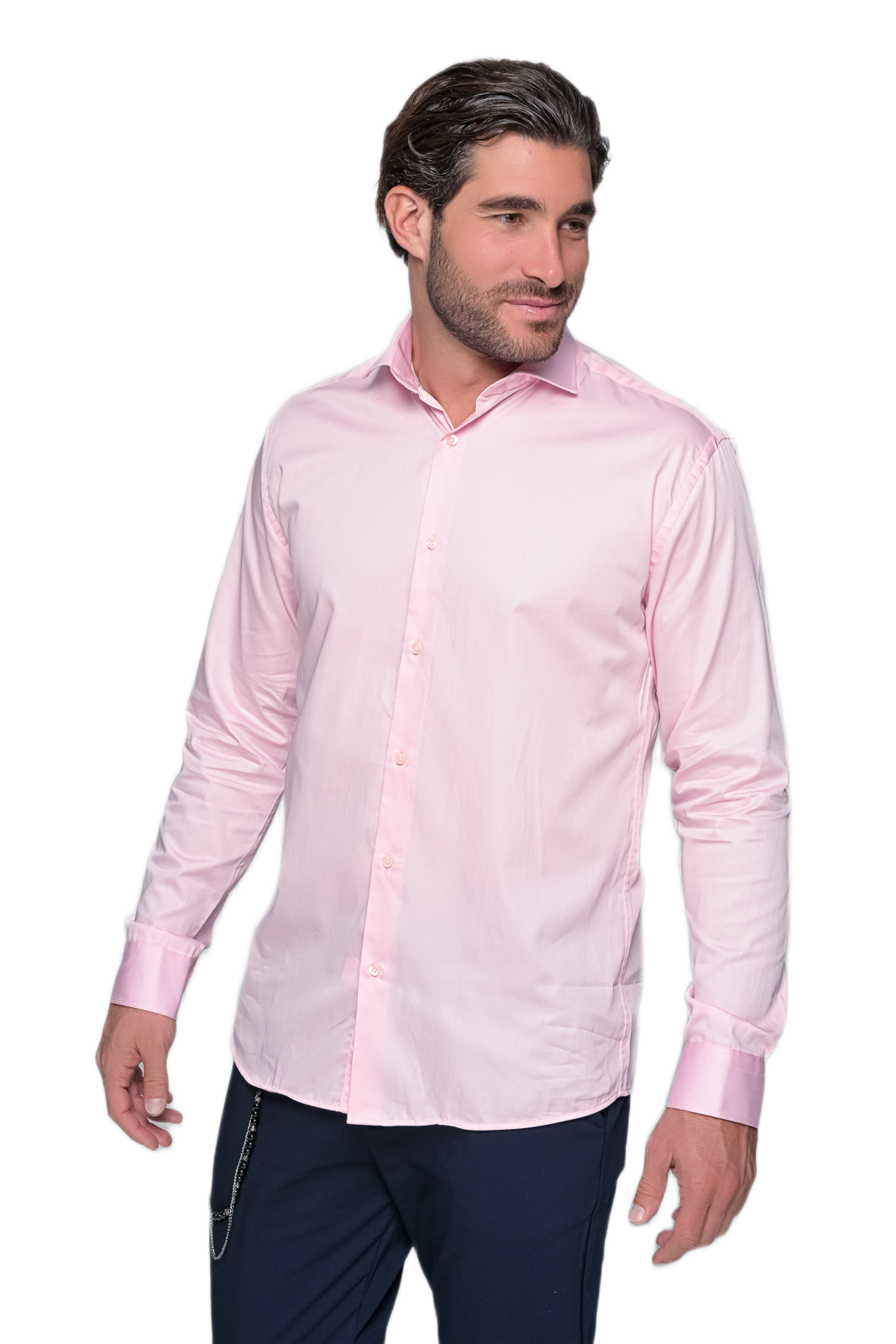 Κομψό ανδρικό πουκάμισο σε ροζ απόχρωση, ιδανικό για smart-casual και formal εμφανίσεις. Διαθέτει slim fit γραμμή που αγκαλιάζει το σώμα, κλασικό γιακά και μακριά μανίκια με μανσέτες. Κατασκευασμένο από 100% βαμβάκι για άνετη εφαρμογή όλη τη μέρα.